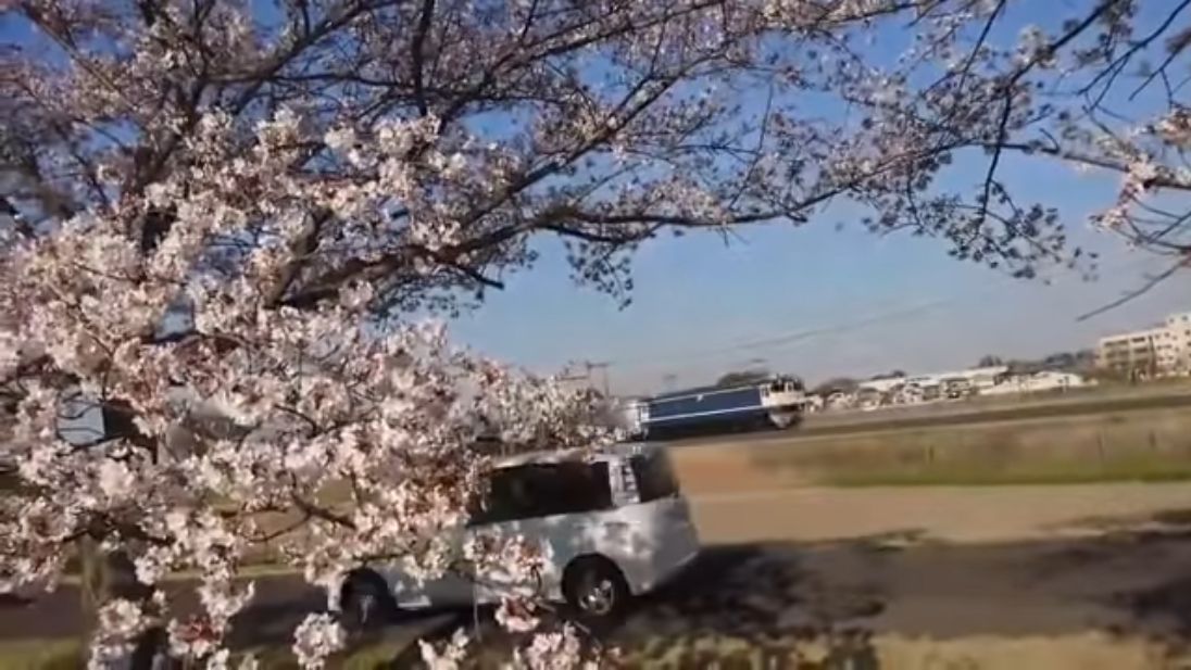 動画を通じて、詳しい状況を見ていこう。まず、問題の撮り鉄集団は道路の脇に立って、目当ての列車を待っていた。位置関係としては、撮り鉄集団-道路-線路という順になる。どうやら、道路脇で咲く桜と列車を一緒に撮ろうとして、この位置でカメラを構えていたらしい。