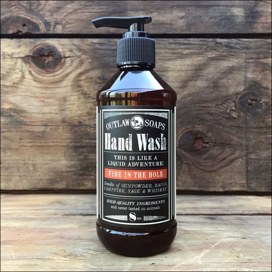 Outlaw Soaps社が作り出したカスタムフレーバーソープのうち、こちらの「Fire in the Hole」は硝煙、焚き火、ウィスキー、ベーコンといったワイルドさを感じさせる香りの配合となっています。