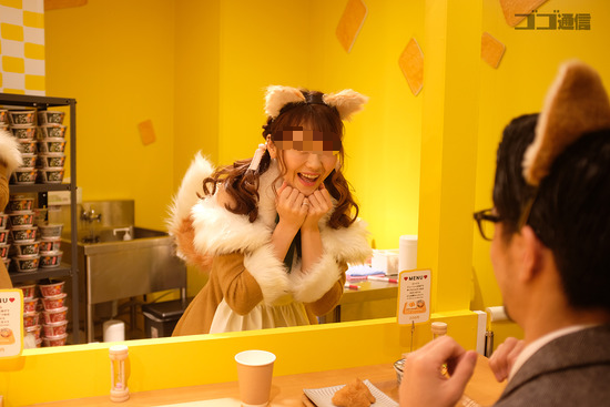 椅子からはきつねの尻尾が生えており、またきつねも耳も置かれている。任意ではあるがこの狐の耳をつけて食べるのがマナーのようだ。