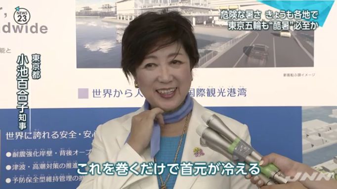 「できるだけ熱中症にならないような対策。これを巻くだけで首元が冷える。こんなことも知ってもらって活用していただきたい」(東京都 小池百合子知事)