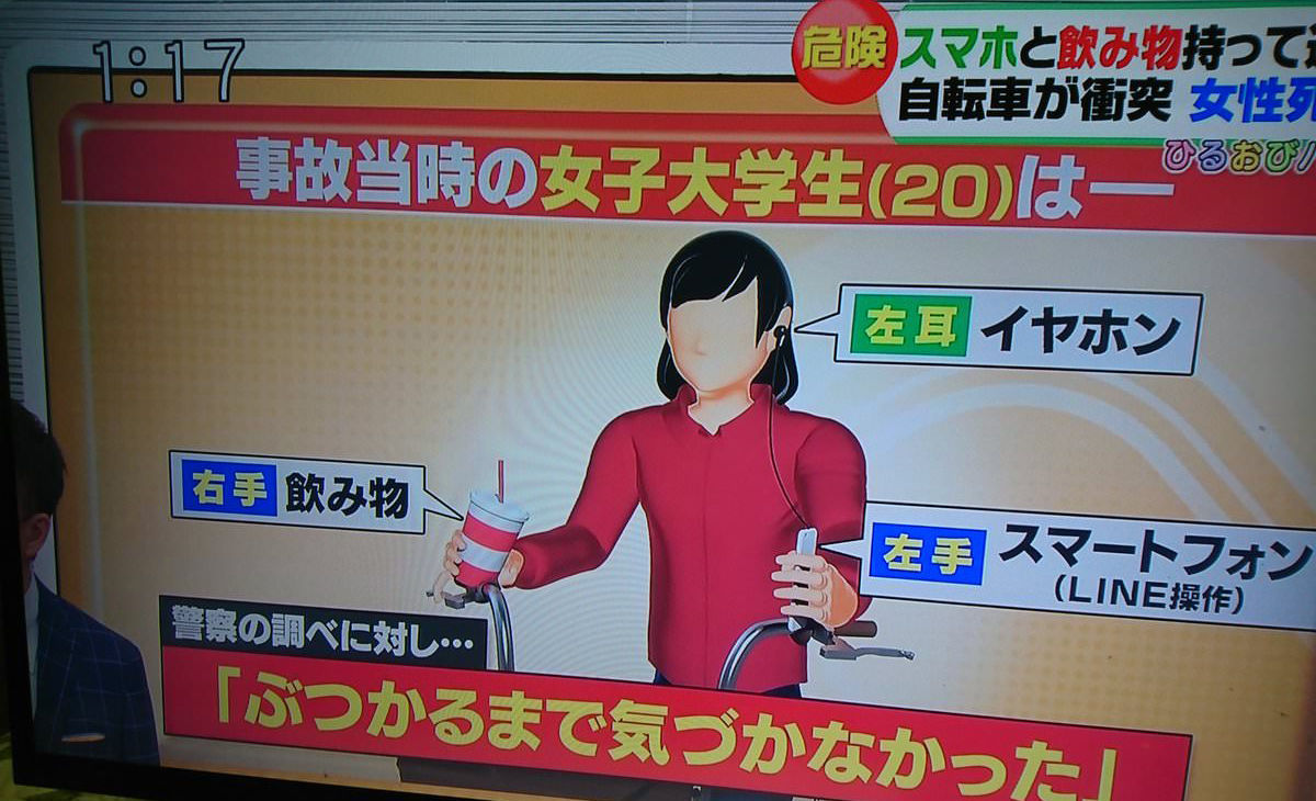 スマホと飲み物を持ちながら自転車に乗り歩行者を死亡させた女子大生に執行猶予判決