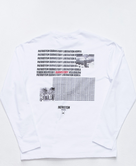 JIMINが着用したそのTシャツには、原子爆弾が爆発する写真と、日本統治解放を迎えた韓国人の写真、「Liberation(光復)」「Our History(私たちの歴史)」「Patriotism(愛国心)」などのフレーズがプリントされている。