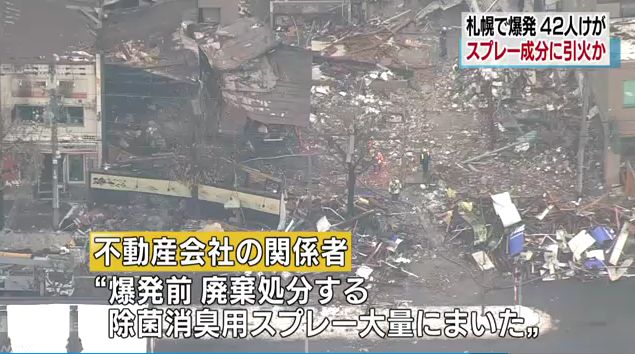 北海道札幌市内で16日夜、居酒屋などが燃え42人がケガをした爆発事故で、居酒屋の隣の不動産仲介会社の従業員が「スプレー缶100本以上に穴をあける作業をした後、爆発した」などと話していることがわかった。